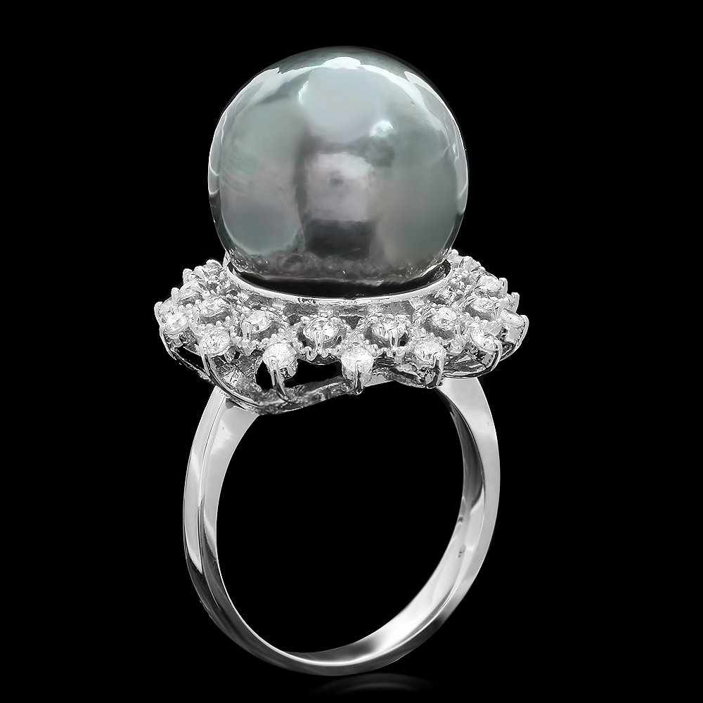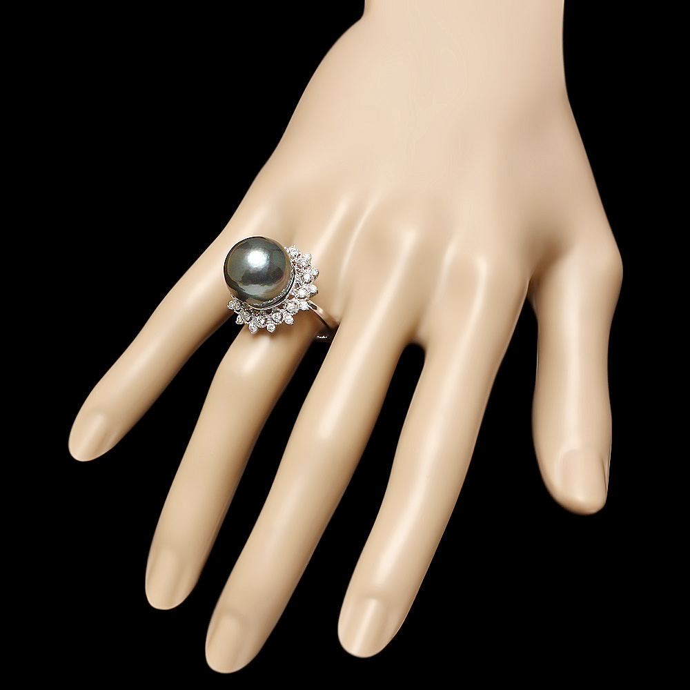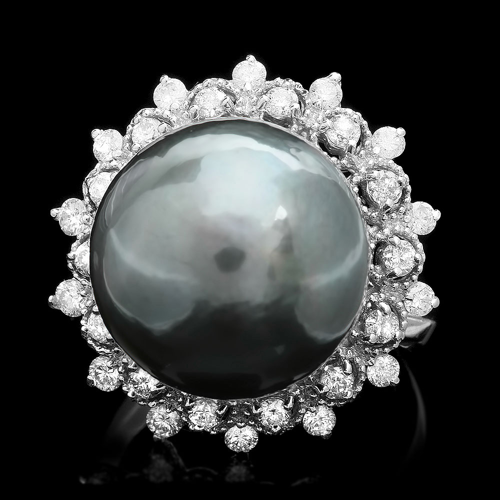 с редчайшей натуральной черной жемчужиной диаметром 14 мм (!!!) в окружении чистых белых 28 бриллиантов на 0,7 карата.