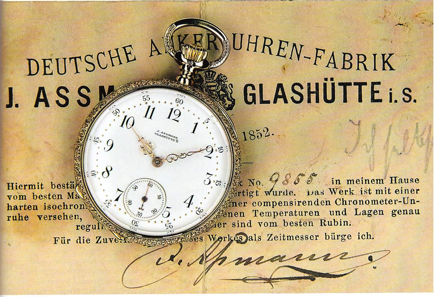 В то время как Гласхютте и его жители сформировали свой микрокосм, по большей части, закрытый от внешнего мира, часы, которые создавались Ланге, Шнайдером, Гроссманном и Ассманном, были известны широкой международной публике. Точные часы Гласхютте были встречены с большим интересом в основных индустриальных странах мира. Удивительно, что все компоненты, использованные в часах, производились с использованием метрической системы, за двадцать полных лет до ее введения в качестве правовой нормы для измерений.
