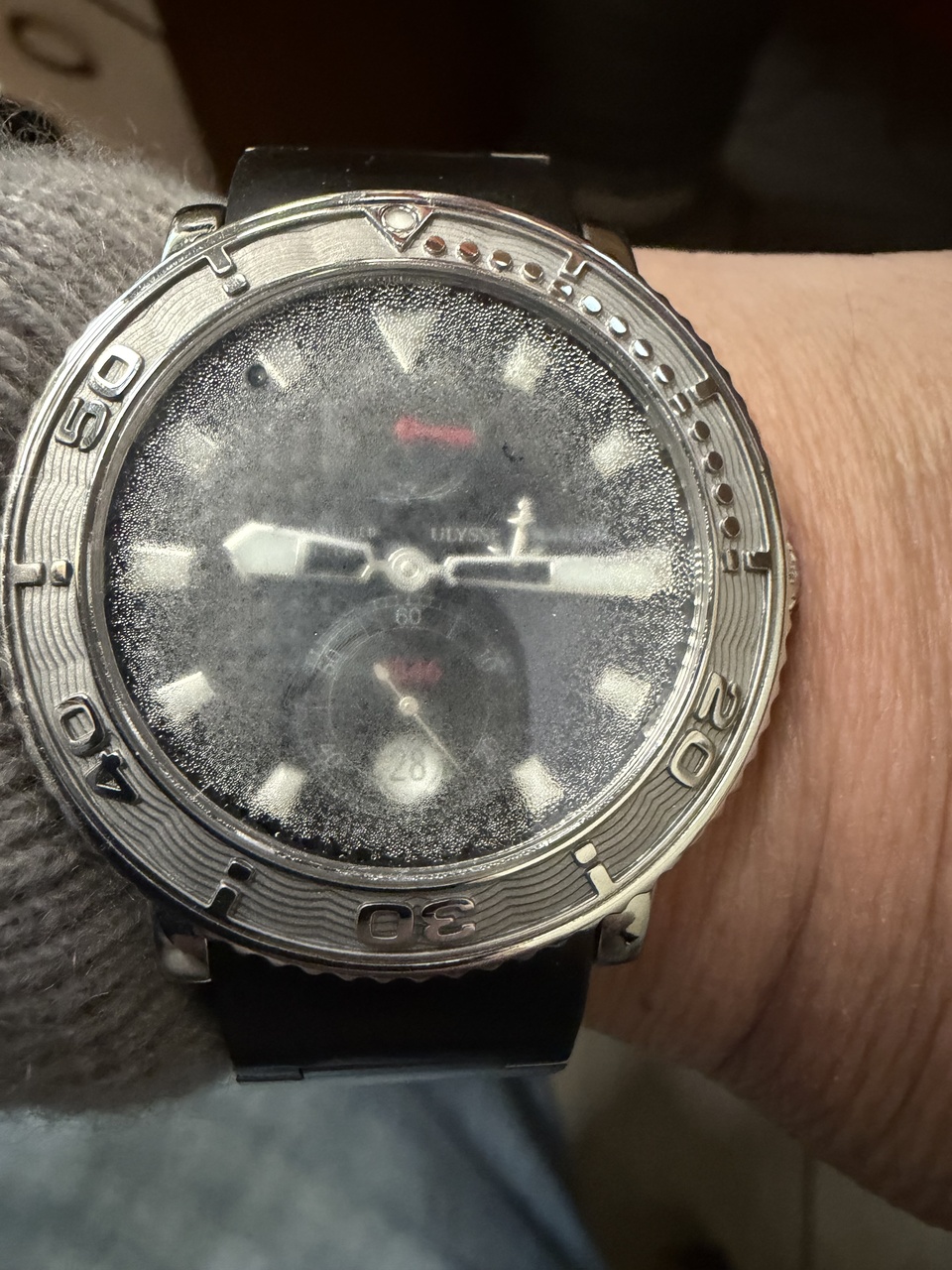 Ложь от начала и до конца. У меня несколько десятков часов, покупал их и в Америке, и в Европе. Видел что то подобное только один раз, но там был старый почти фатально некомплектный механизм Патек, продававшийся на хроно24 как рабочий, чудом удалось восстановить. На счет часам 30 лет, у меня и столетние есть, пробило на Улиссы, купил за последние несколько недель три штуки(один марин и два дайвера), все старые 2000+/-, все в сервис центрах, никаких подобных проблем с двумя другими нет. Ни в обьявлении, ни в видео, которое прислал продавец, нет ни слова о двух существенных проблемах часов: безель и водозащита 5 бар(брызгозащита по русски). Зато есть про водозащиту и гарантию 12 месяцев. Покупка была 18 ноября, не за 20 дней и не за месяц, а за 10 дней до того, как намокли. Проблемы с безелем обнаружил сам при осмотре, про водозащиту четко спросил, услышал что есть. Ни про какие 5барные приборы мне не сказали конечно. Мой косяк тоже, имел дело только с нормальными мастерскими, предположить даже не мог что так могут продавать 300 метровый дайвер. Да и понятно , что не купил бы никогда дайвер без водозащиты, а если бы знал, то наверно в бассейн не полез бы в нем. Любой авторитетный продавец на этом форуме , если бы продавал такое, чтобы сберечь свою репутацию , писал бы большими буквами везде про такой безель и такую водозащиту. У официалов в самом деле циферблат и его замена стоят не дорого. Но если у них есть сомнения в состоянии часов, а они логично почти всегда есть, готовы это делать только вместе с полным обслуживанием. Часы были показаны в сервисе Улисса, никакого вскрытия там не было. Сразу сказали что только с обслуживанием. Был готов и к такому варианту, не сильный перфекционист, решил носить как есть. В пятницу 28 ноября после намокания и отказа продавца от гарантийных обязательств(скриншот прикрепляю) часы конечно поехали на сушку к официалам.