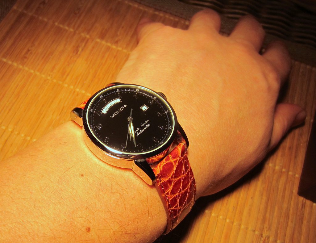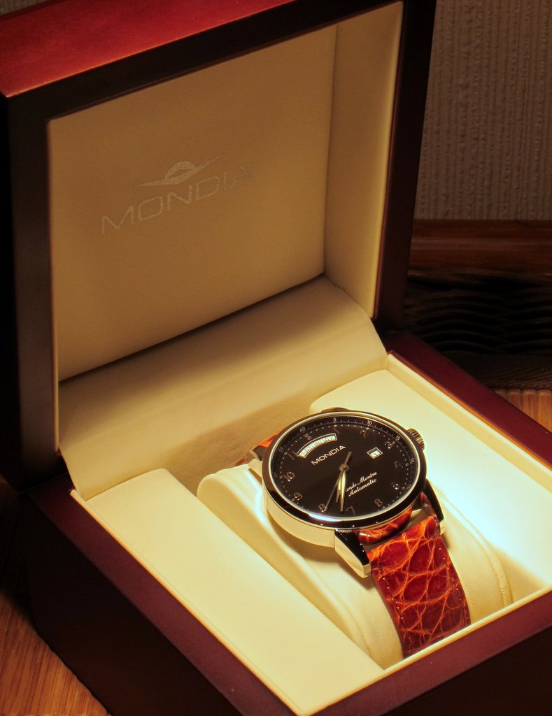 В продаже замечательный экземпляр от испанского часового бренда Mondia. Подробнее о часах этой фирмы можно почитать тут