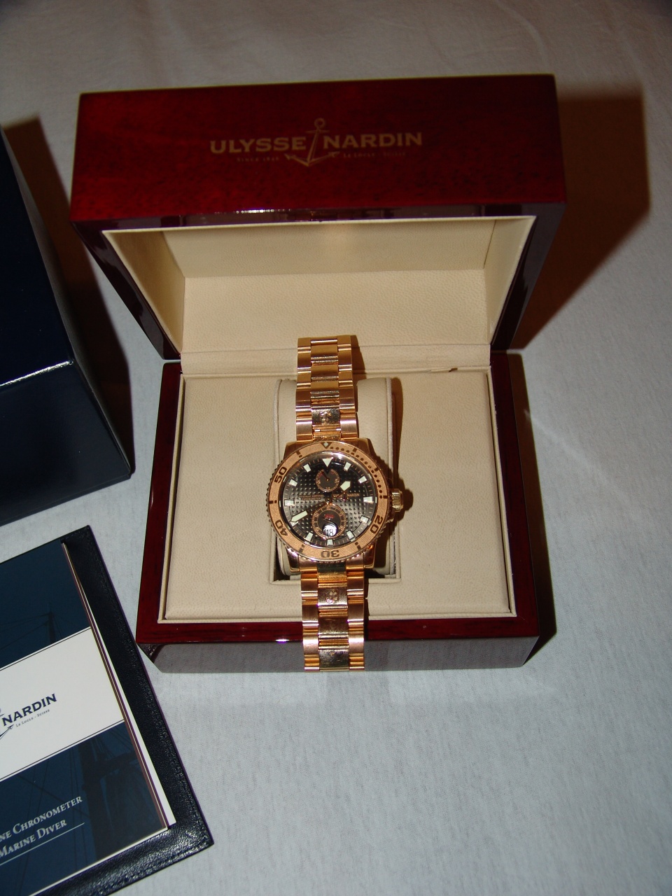 Продаю Ulysse Nardin MAXI MARINE DIVER полностью ЗОЛОТЫЕ, идеальное состояние полный комплект (коробка+документы). часы в Москве