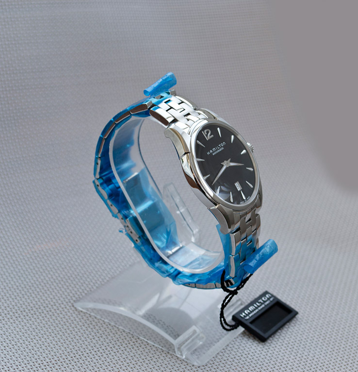 Элегантные классические часы HAMILTON JAZZMASTER SLIM H38615135. Плоские костюмные часы - толщиной 8 мм с великолепным дорогим механизмом ETA 2892A2. Фигурный корпус из стали 316L. Сапфировое стекло - линза. Чёрный циферблат с переливом. Накладные полированные риски и цифры с алмазной гранью. Яркий люминофор на стрелках и рисках. Великолепный стальной литой браслет с застёжкой-бабочкой. Классика на все времена. Абсолютно новые в плёнках!