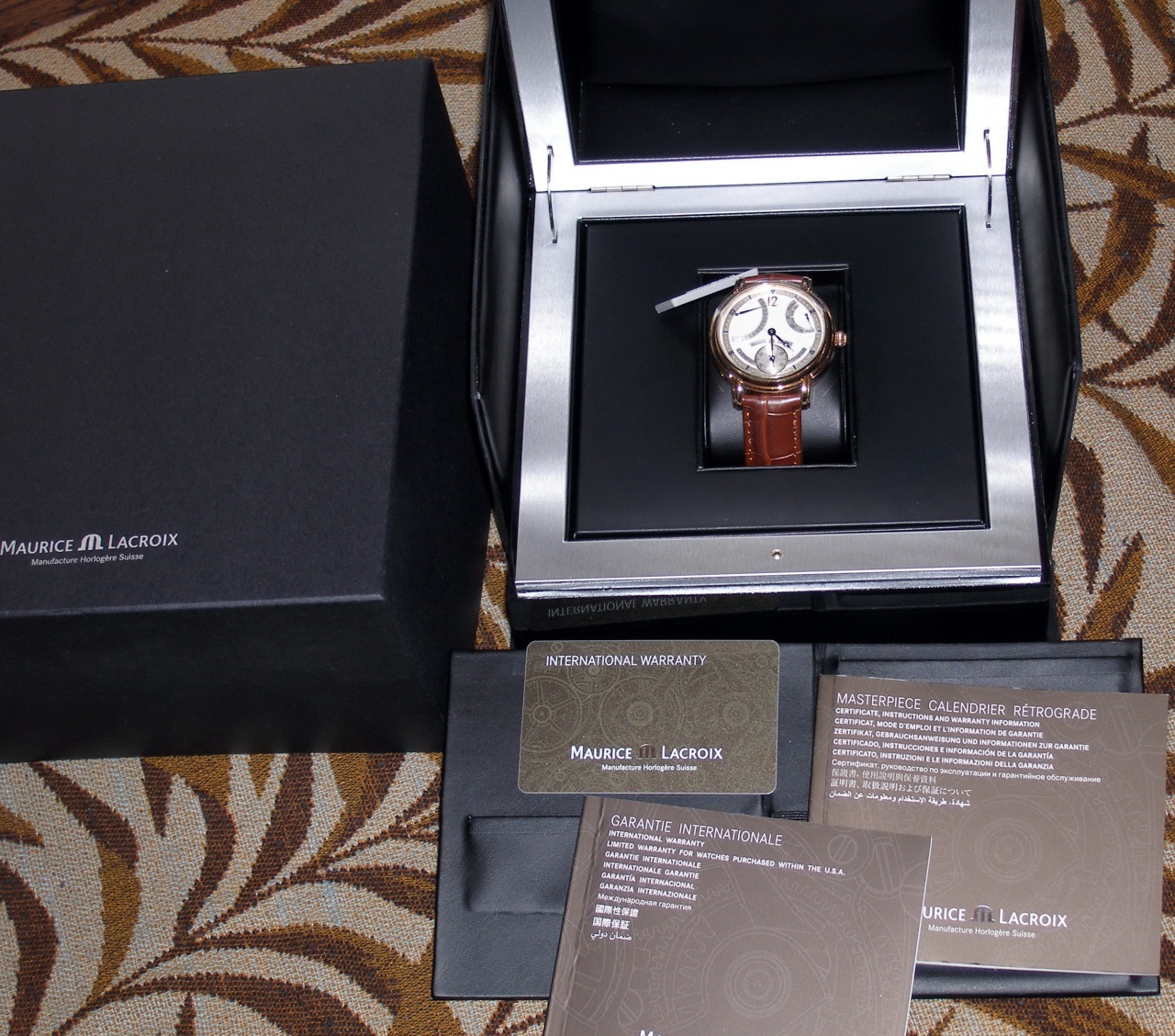 Мужские часы Maurice Lacroix модель Masterpiece Calendrier Retrograde- mp7068-pg101-190 В золоте 750 пробы. Абсолютно новые в пленках и бирках, не одевались и не носились, полный комплект. Две коробки, все документы, гарантия-сервисная карта. Часы естественно оригинал- любые проверки на подлинность и точность хода по Вашему желанию.