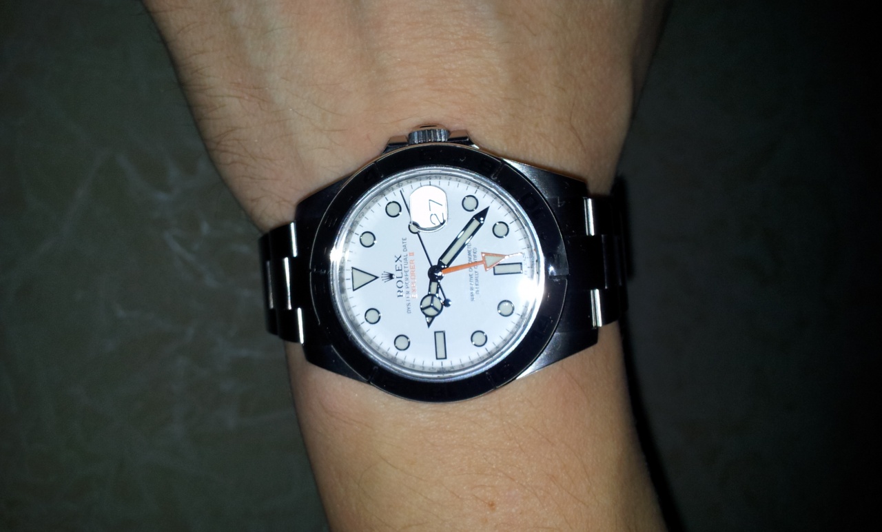 Итак, думал я последнее время думал и вот что надумал. Как поначалу меня тянуло к Панерай, так сейчас начал манить Ролекс, не не так Его Величество Ролекс. Начал просматривать модели прикидывать, что да как и вдруг....произошло Событие! На сегодня(да наверное и навсегда) Главное Событие моей жизни. И думаю нужны часы, которые будут со мной не просто долго, а очень долго. В идеале - всегда. Снова думал и по итогу выделил(уже из Ролекса) одни, которые цепляли меня сильнее всех. Ролекс Эксплорер 2. И тут встала нереальная проблема купить их))) форумные продавцы как назло распродали все остатки. Я метнулся в сторону Саба, потом в сторону Халка, но это было не то все не то...Так как Экспло не нравился ни один из Ролексов. Но вот белый цифер думал я наверное не очень(ибо привык к черному). С думой поехал в Меркури и...посмотрев два сразу понял, что белый цифер ЭТО ОНО!!!