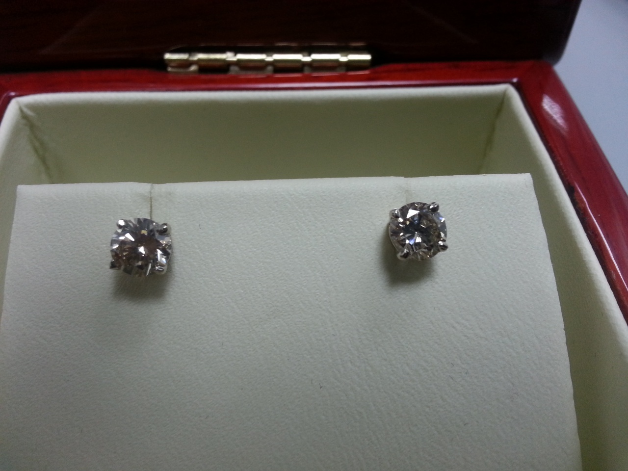 Серьги-пуссеты белое золото/бриллианты 1,07 карата
