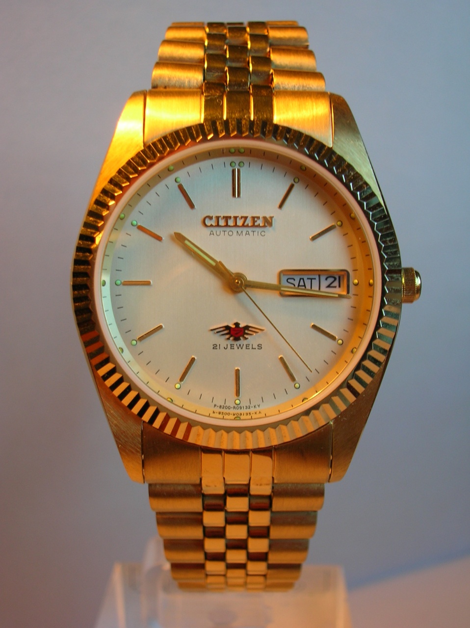 Мне ооочень сильно понравился классический корпус часов с граненным безелем, "президентским" браслетом, датой и автоматикой. В идеале, конечно же, было бы продать пол-квартиры и купить себе золотые Rolex DayDate II, но ввиду наличия здравого смысла эта идея сразу же была отложена на будущее (с лишними 30к зелени в кармане).