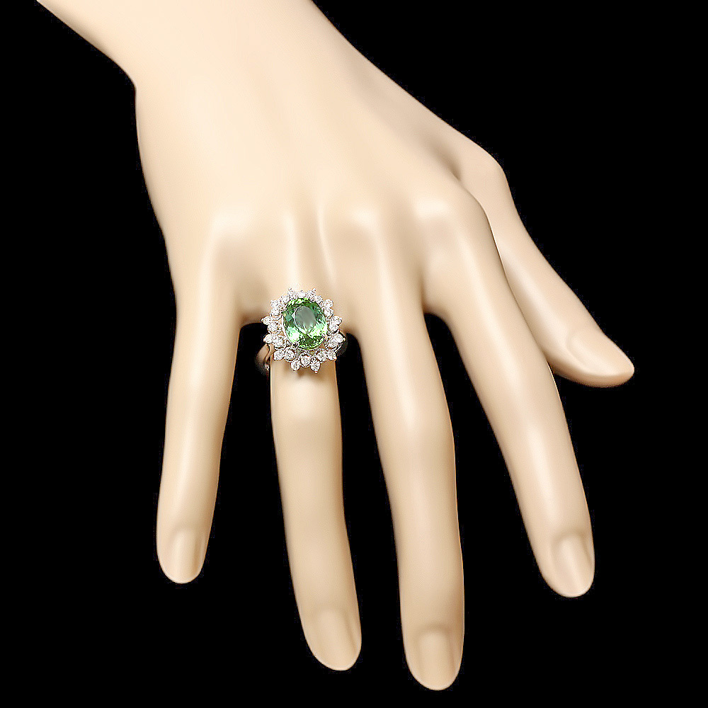 Роскошное новое дизайнерское кольцо (Jaqu de Lili) из белого золота 585 пробы (14К) с большим зеленым турмалином (размер 12х10 мм) 4 карата и бриллиантами вокруг 0,6 карат. Размер самого перстня 18х20 мм). Камни играют невероятно красиво. Размер кольца 17. В фирменной коробке с клеймом 14К и логотипом дизайнерского бренда. Продаю за 45 000 рублей.