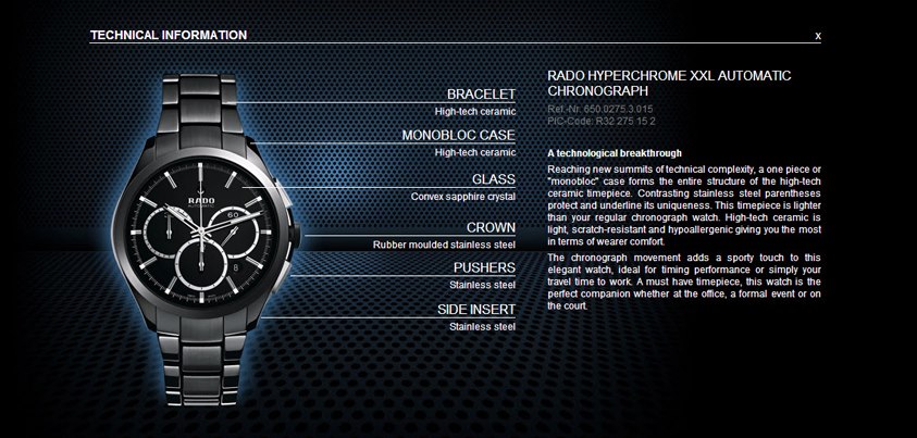 На международной часовой выставке Baselworld-2013, которая состоится в конце апреля - начале мая текущего года в Базеле (Швейцария) будет официально представлена новая модель HyperChrome Chronograph от швейцарской часовой компании Rado.