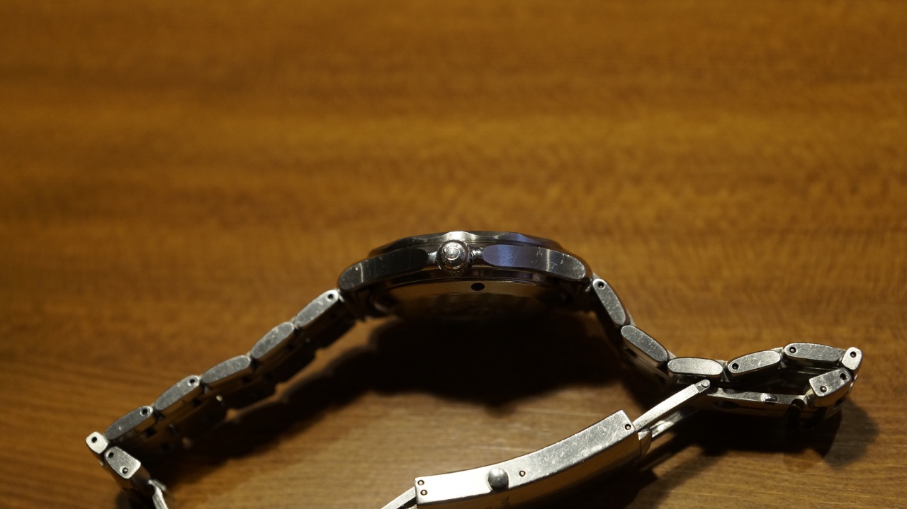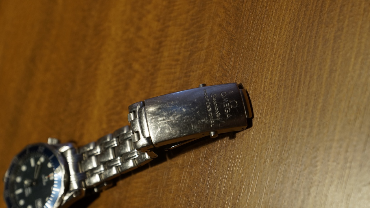 Часы оригинальные, носились постоянно, дефекты: царапина на стекле, небольшие царапины и две щербинки на вставке безеля, небольшие царапины на браслете, также есть потертости браслета.