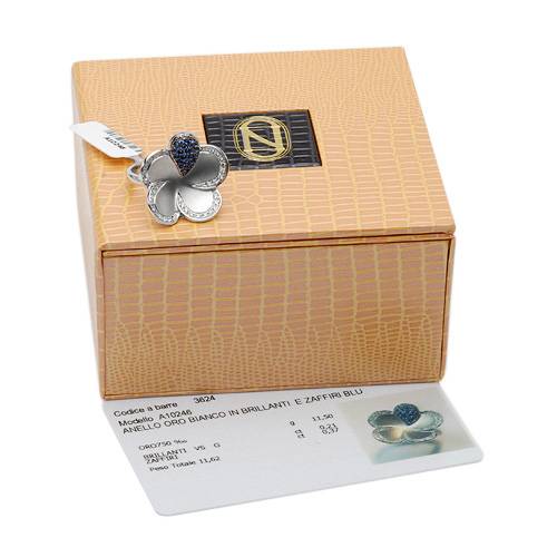 Украшено 40 бриллиантами на 0,21ctw (цвет G, чистота VS1) и 24 сапфирами на 0,37 ctw.