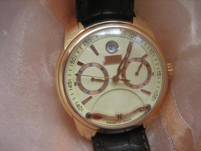 Модель Beauty-Fuel включает в себя индикатор резерва хода, напоминающий автомобильный счетчик бензина, даты и дня недели, а также второго часового пояса. Корпус изготовлен из 18-каратного червонного золота.