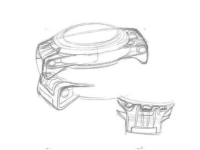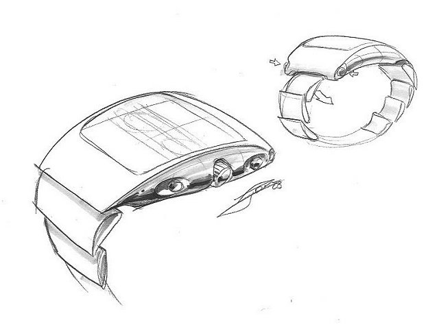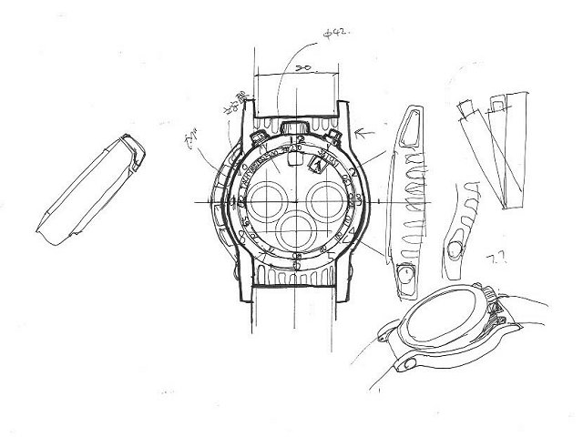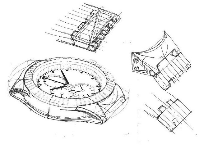 Первоначально его воодушевили формы крыла и часы планировались не круглой формы. Это хорошо видно по первоначальным эскизам.