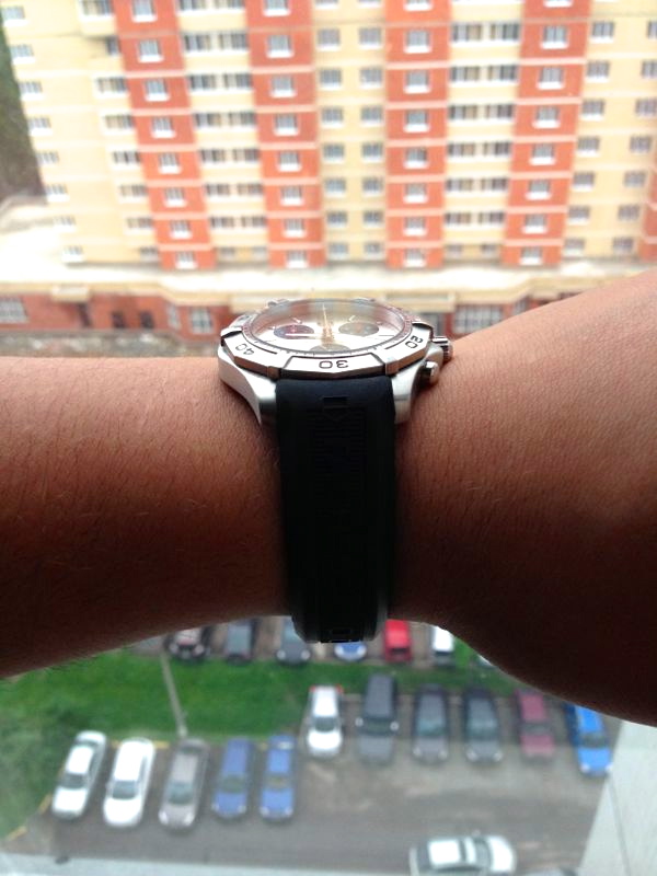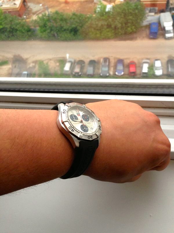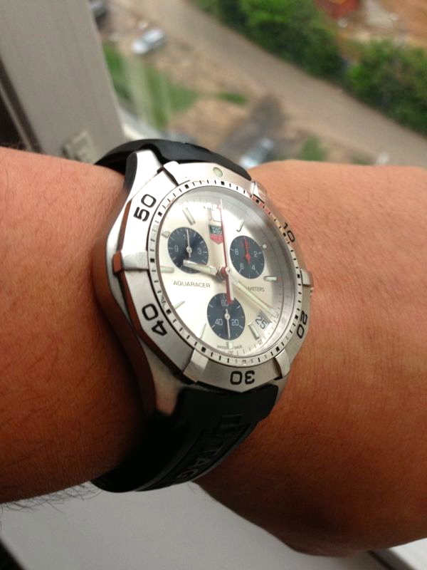 Современный, крупный "дайвер-хронограф" от Tag Heuer, с точностью измерения до 1/10 секунды.
