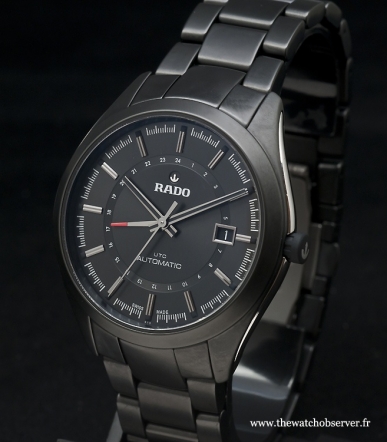 Rado HyperChrome UTC Black dial: Ref. 642.0165.3.015 / Same technical characteristics than the previous model except = Black dial / Rhodium coloured applied indexes and hands / Strap: