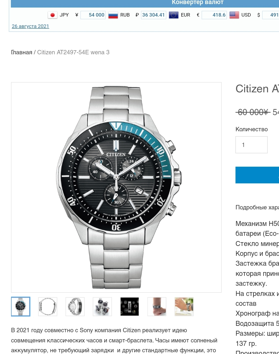 На Ebay, Ситизен, солярка, сапфир, WR от 100м