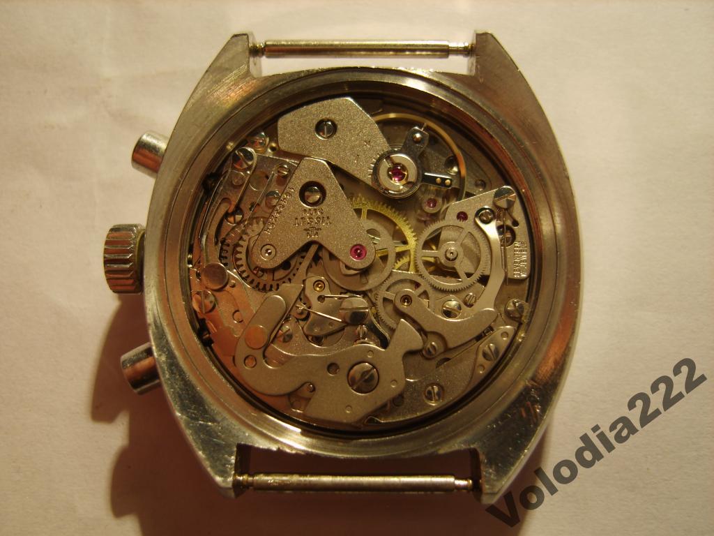100% оригинал. Выпускался с 1970-х годов. Часы ходят точно.Калибр 7734 на 17 камнях. Недостаток - поломаны рычажки возле кнопок хронографа