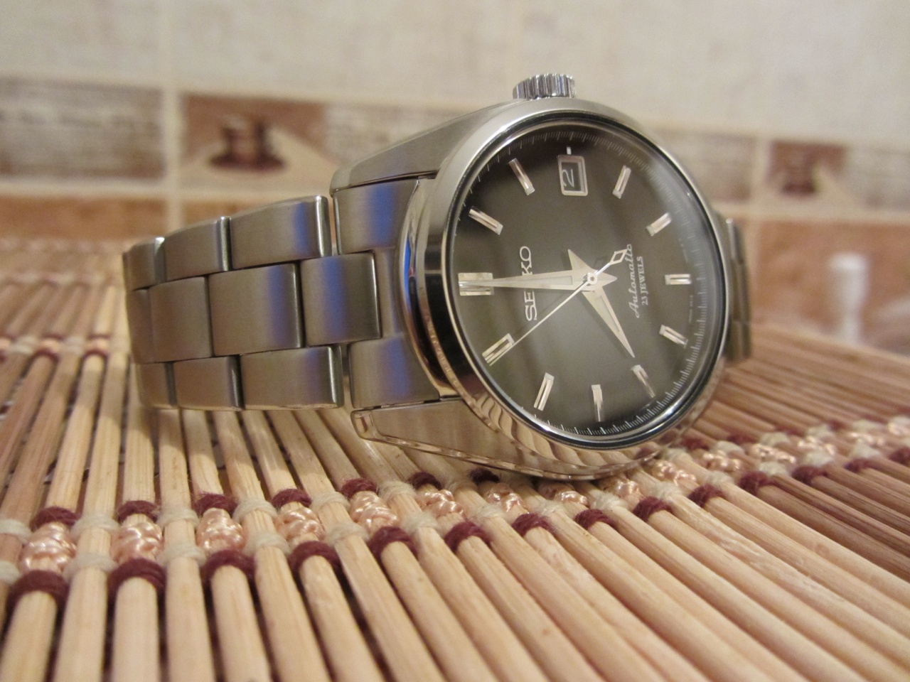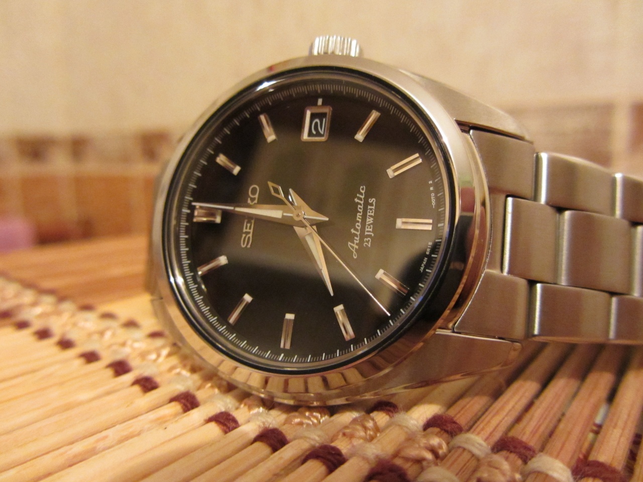 Часы носились совсем немного (не больше 10 дней), состояние отличное. Имеются незначительные следы носки на браслете (небольшие потертости на одном звене возле застежки и мелкая царапина на самой застежке). Наблюдаемая мной точность при ежедневном ношении от +2 до -2 сек. в сутки (насколько я понял напрямую зависит от степени завода пружины). Покупал для себя, но не подошли. В комплекте идут часы, коробка, гарантийный талон, инструкция.