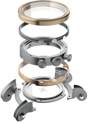Корпус – 45 мм, модульный: бронза, титан и полированная сталь. Лимитированный выпуск в 125-ти экземплярах.