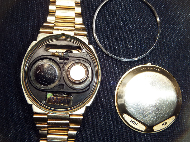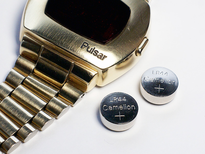 На презентации далеких 70-х обещали полный год работы от двух крупных батарей (сейчас такой размер не производят). При условии, что дисплей часов не используется более 25 раз в день. Сегодня в часах Pulsar P2 можно установить две батареи типа LR44, которые ставятся в корпус вместе с уплотнительными кольцами (можно сделать самому из резиновой трубки или купить на eBay). С хорошими батареями LR44 мой экземпляр Pulsar P2 может работать, как я уже писал выше, около 6-7 месяцев. Батареи действительно лучше использовать дорогие, т.к. взрыв или протечка некачественных элементов питания может испортить редкий и дорогой механизм.