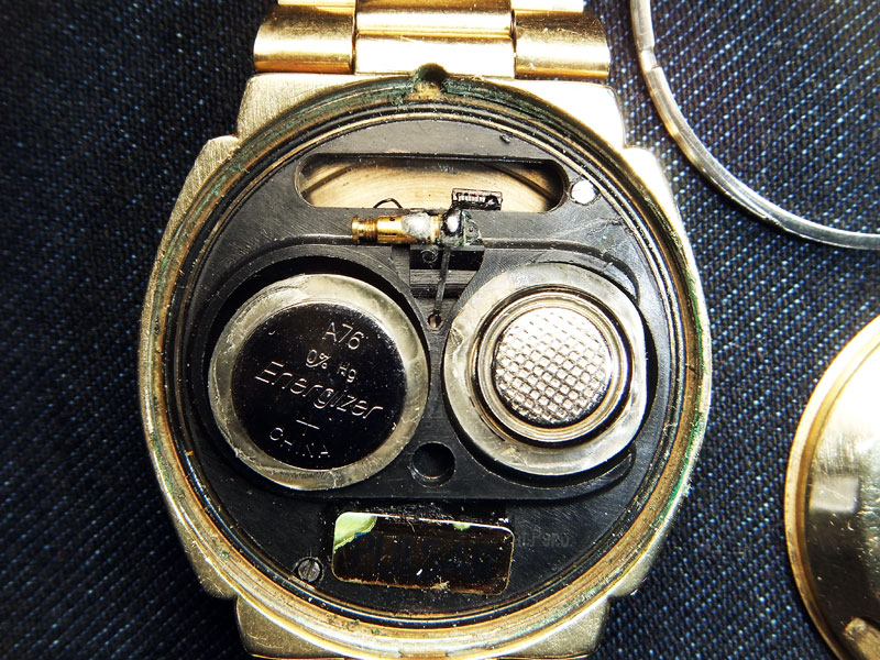 Все кнопки (три штуки) в часах реализованы на герконах - упругих ферромагнитных контактах, запаянных в герметичную стеклянную колбу. При поднесении магнита контакты соприкасаются и ток идет по цепи. Магнит встроен в основную кнопку справа от дисплея. При её кратковременном нажатии отображается время в часах и минутах (12-тичасовой формат, т.к. для экономии при производстве дисплея первой может отображаться только единица). При удержании кнопки начинают отсчитываться секунды. Использование герконов, теоретически, позволяет сделать корпус водонепроницаемым. Однако, например в моих часах подтекает стекло - его необходимо переклеивать.