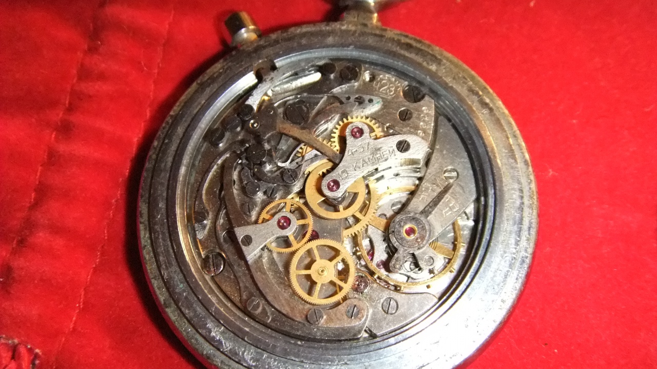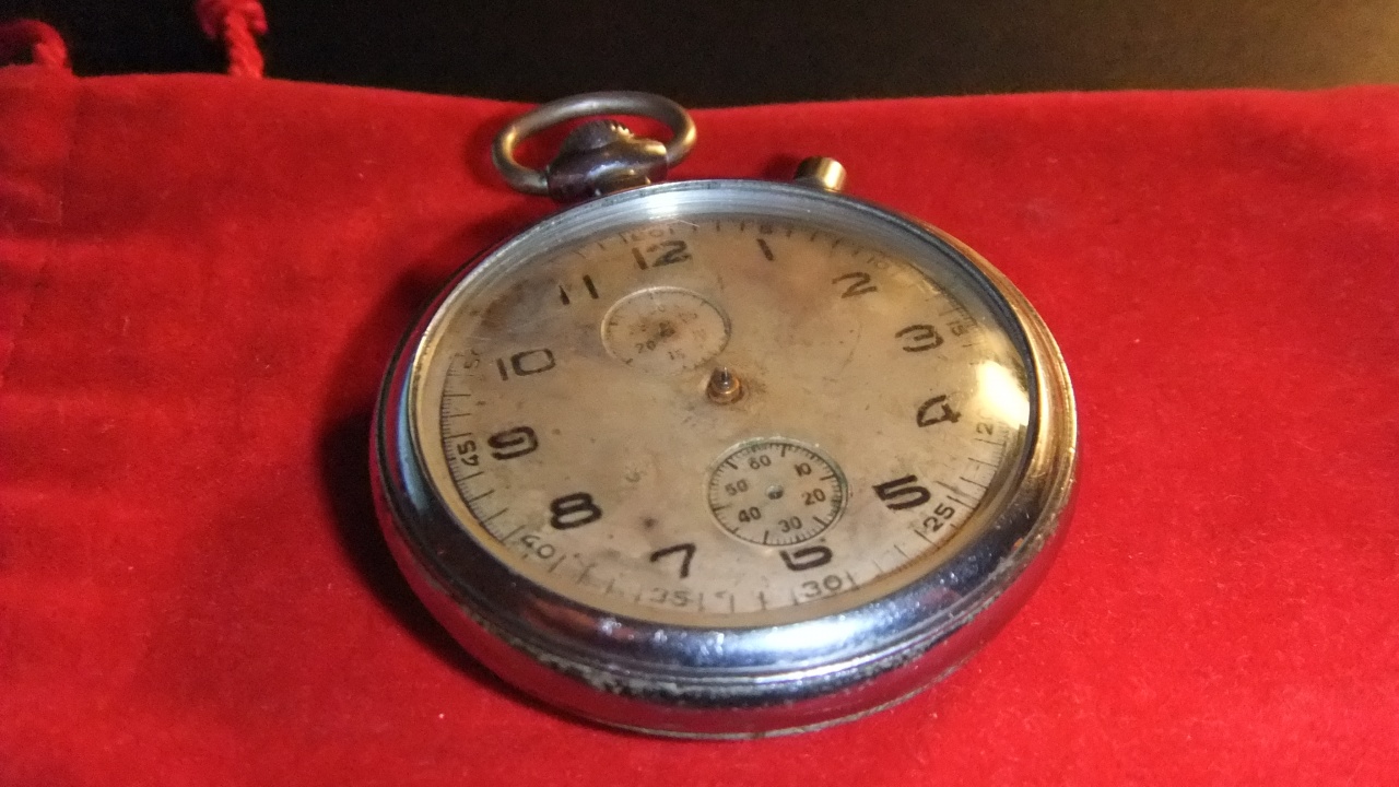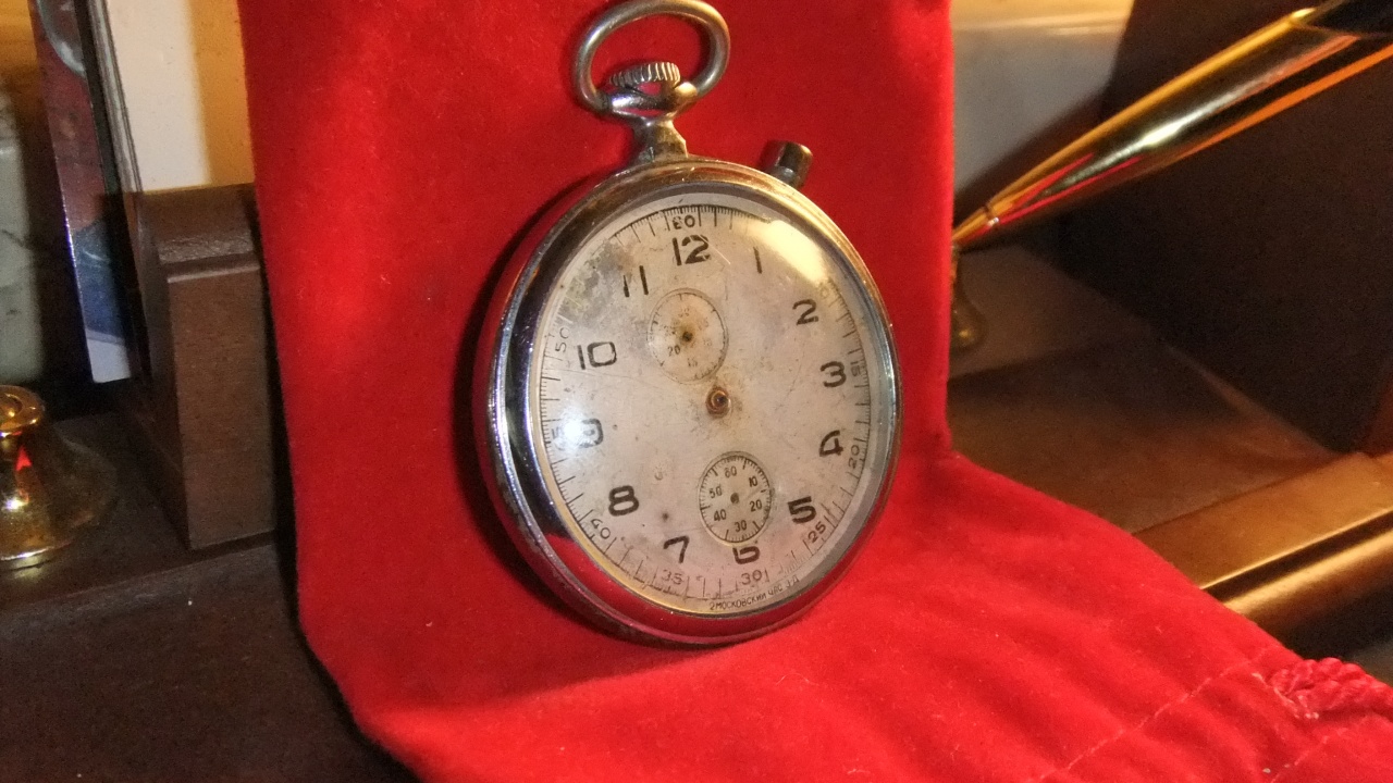 На запчасти! Карманные часы, однокнопочный хронограф ЧК-28, 1957 год