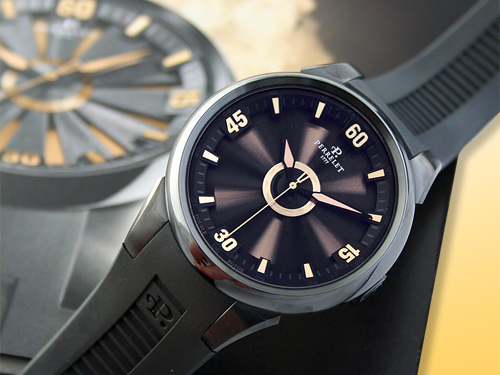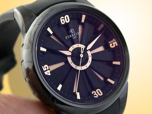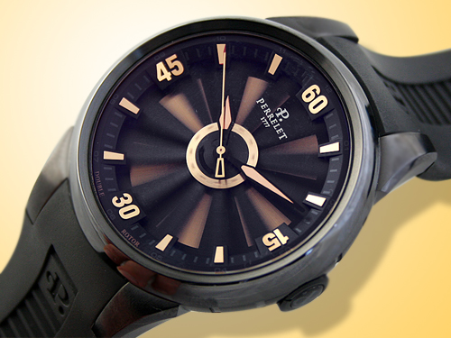 PERRELET представил на суд публики специальную версии своих Turbine Collection. Они посвящены агенту 007 из знаменитой «бондианы» Яна Флеминга (Ian Lancaster Fleming) – модель с черным PVD-покрытием и золотыми циферблатом, индексами и стрелками в тонах заставок первых фильмов. Серия ограничена 888 экземплярами. Корпус имеет 44мм в диаметре и 12,5мм в высоту и выполнен из нержавеющей стали с DLC-покрытием. Стекло сапфировое с двойным антибликовым покрытием. Водостойкость 50 метров. Механизм остался прежним – автоматический калибр P-181 с двойным ротором, являющейся отличительной особенностью марки.