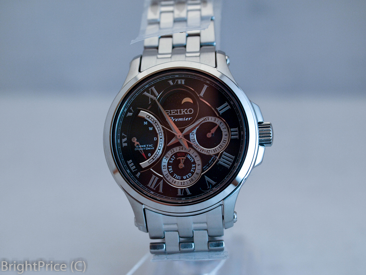 Представляю Вашему вниманию одну из топовых моделей серии Premier Kinetic Direct Drive от Seiko. Черный циферблат, стальной браслет на складной застежке, календарь, автоподзавод и возможность прямого завода с интерактивной индикацией уровня накопленной энергии, фазы луны - всё это собрано компанией Seiko в одной из самых модных моделей часов с рекомендованной розничной стоимостью в 1295 долларов.