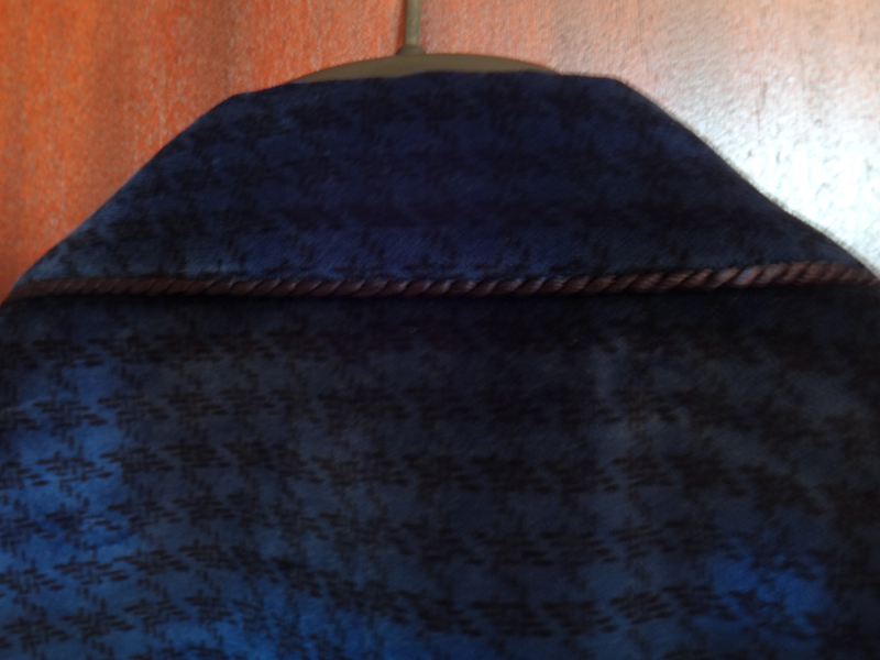Пиджак сделан из вельвета красивейшего темно-синего цвета, с узором Houndstooth (клыки). Вельвет абсолютно натуральный, 100% хлопок, никакого полиэстра! Материал бархатный на ощупь, играет на свету. Множество классных деталей (см. фото ниже).