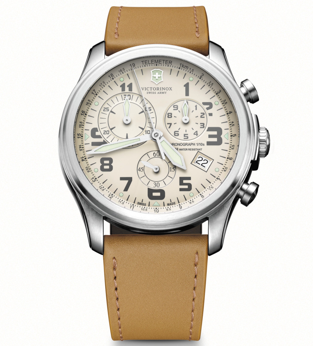 Продаю новую модель от Victorinox Swiss Army - Infantry Vintage Chronograph 241579. Бежевый циферблат и светло-коричневый ремень. Швейцарский кварцевый хронограф с телеметрической шкалой. Стекло - сапфировое с тройным антибликовым покрытием. Механизм ETA 251.272 на 22 камнях. Люминисцентные стрелки и метки, водозащита 100м. Высочайшего качества тостый кожаный ремешок.