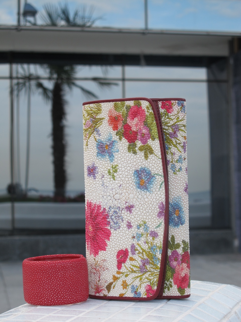 Подарочный комплект:кошелек и браслет из кожи ската
