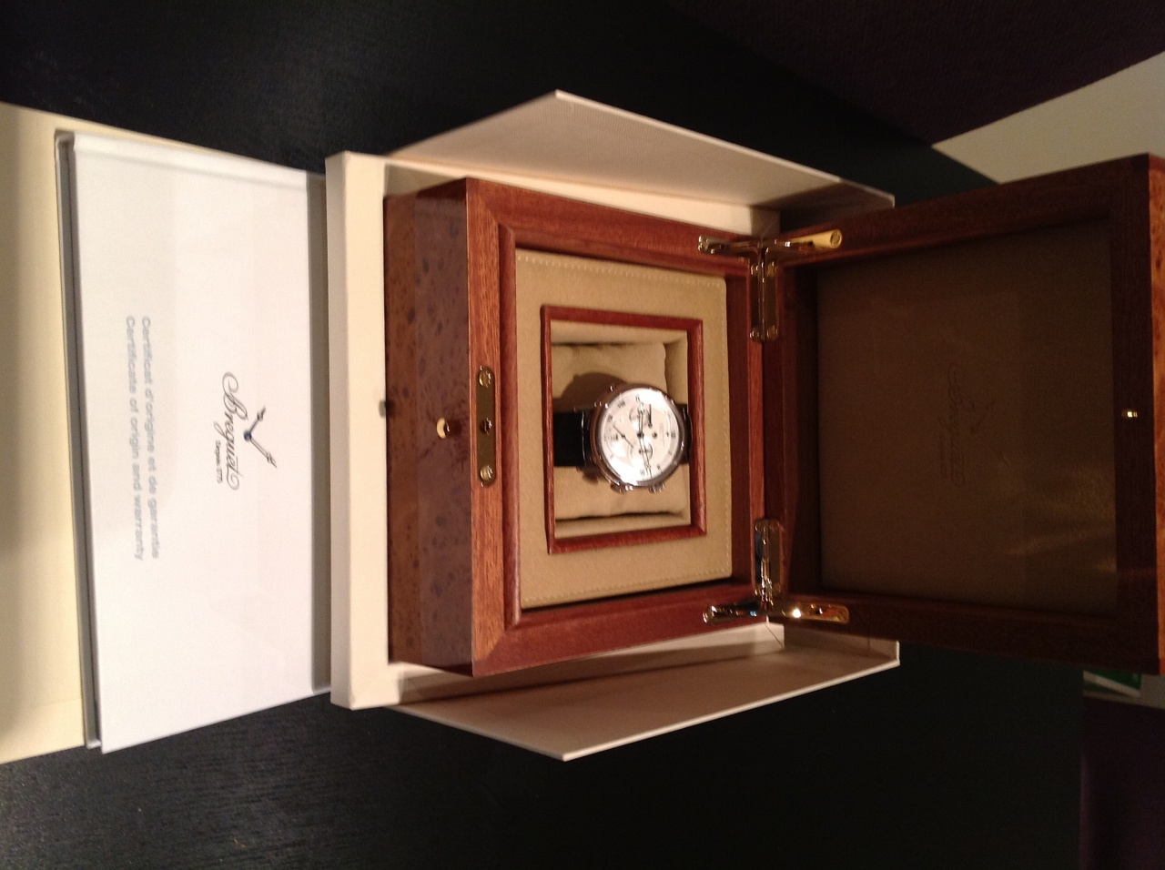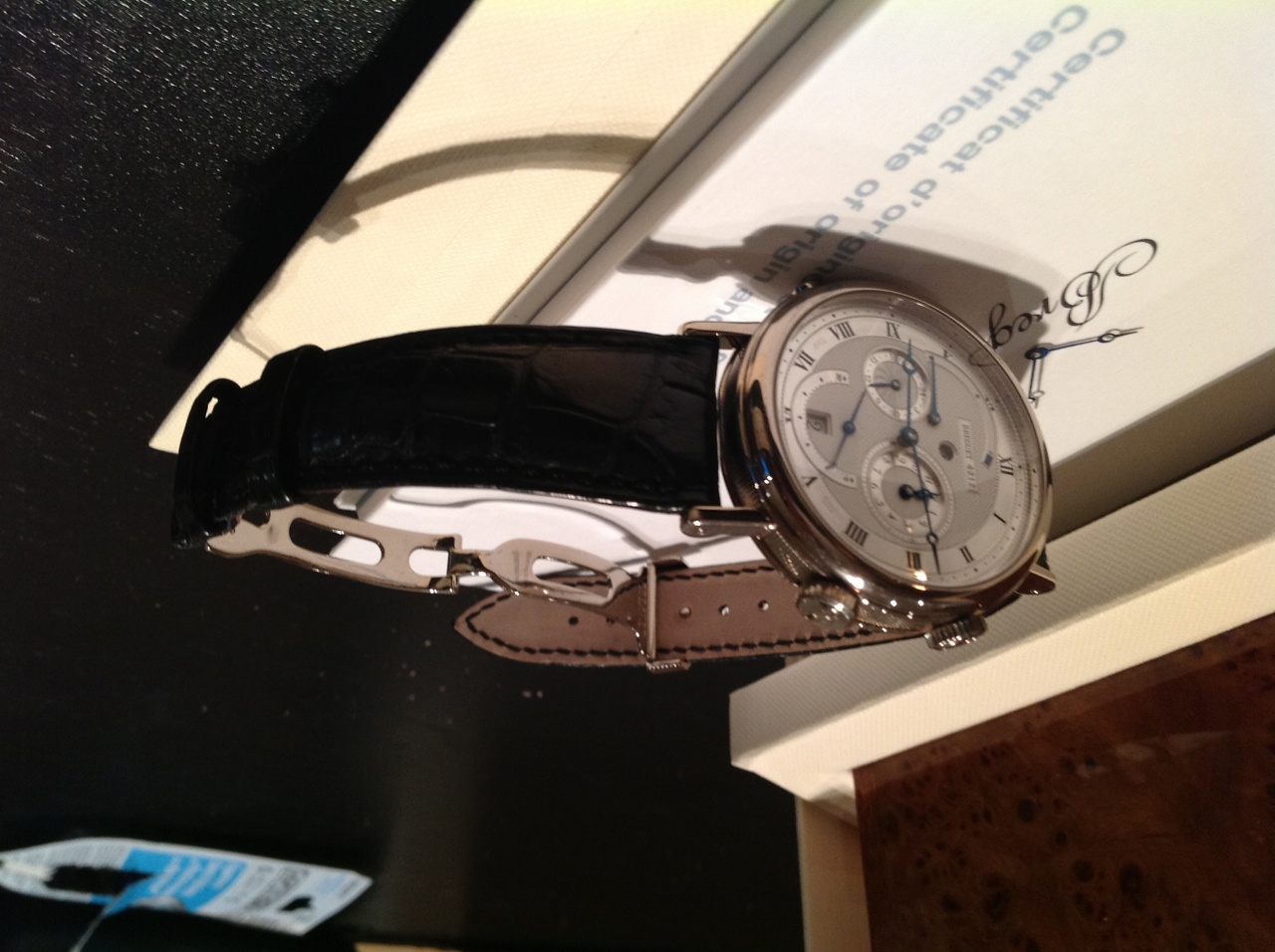 МЕХАНИЗМ: Швейцарский механизм 519F, с автоподзаводом, 38 рубиновых камня, запас хода на 45 часов. ЦИФЕРБЛАТ:Серебристый с теснением, стрелки синие,цифры римские. Окно указателя функции вкл/выкл. Alarm у цифры 12. Малый циферблат для установки времени срабатывания будильника у цифры 3. Секундная стрелка и окно указателя даты у цифры 6. Малый циферблат 24-х часового времени второго часового пояса у цифры 9. СТЕКЛО: сапфировый хрусталь, защищеный от царапин. БРАСЛЕТ: ремешок из кожи аллегатора с BREGUET Logo на двойной раскладной застежке из белого золота. ВОДОНЕПРОНИЦАЕМОСТЬ: 30 метров.
