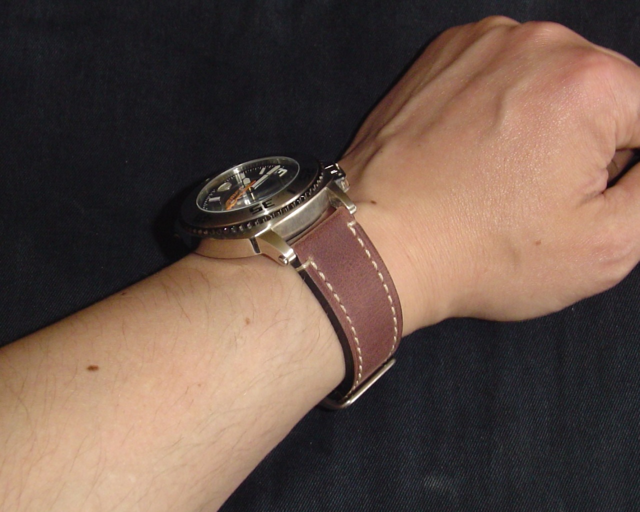 Просматривая форум, увидел отчёты по этим часам. Понравились внешне. Тем более, что висели сочные фотографии, которые не могли не привлечь внимание досужего наблюдателя. А когда увидел фотографии этих часов на ремешке, то в голове свербила только одна мысль. Очень захотелось купить. Что бы были русские брутальные часы. И дизайн оригинальный, и красивые что бы по-своему были. И что бы с ними и в огонь, и в воду Вот я и купил их. С начала к ним купил чёрный ремешок, но, на мой взгляд, гармонию с ним не поймал Потом меня осенило, что нужен коричневый широкий с белой прострочкой и мне станет от этого вида хорошо. Опять пришёл к часовщику, ещё раз с ним поздоровался и купил тот ремешок, который вы сейчас видите на фото Прошу прощение за плохие фотографии. Часы даю в сравнении с К-43, которые то же немаленькие. Одев "Красное Море" на запястье, чувствуешь ВЕЩЬ. Фотографии не передают характер часов, их живость, если хотите. Эти часы толкают на ПОСТУПОК Нажмите на изображение для увеличения
