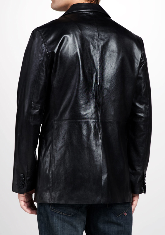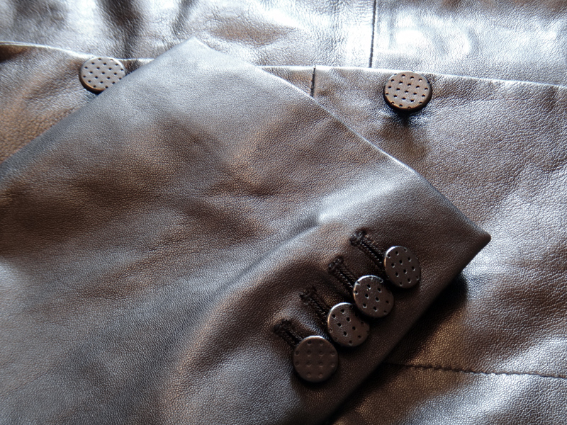 Пуговицы пиджака и пуговицы на рукавах обтянуты перфорированной кожей: