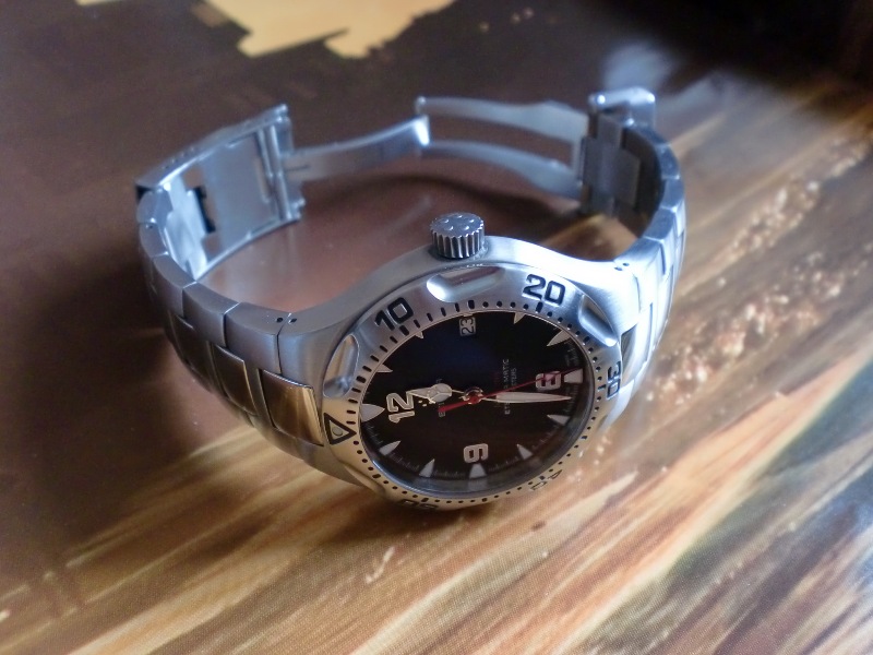 Из недостатков: мелкие царапки на пряжке браслета имеются, но офисные, без безобразий. Зато застежка – браслетная, а не «бабочка», так что точная подгонка браслета по руке обеспечена. Сейчас браслет укорочен до 19,5 см, два снятых звена прилагаются.