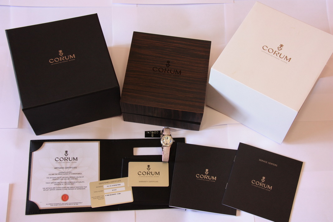 Комплект: абсолютно новые часы, коробка, шкатулка, инструкция и гарантийная книжка, гарантийная карточка, карточка-сертификат на бриллианты, 2 бирки.
