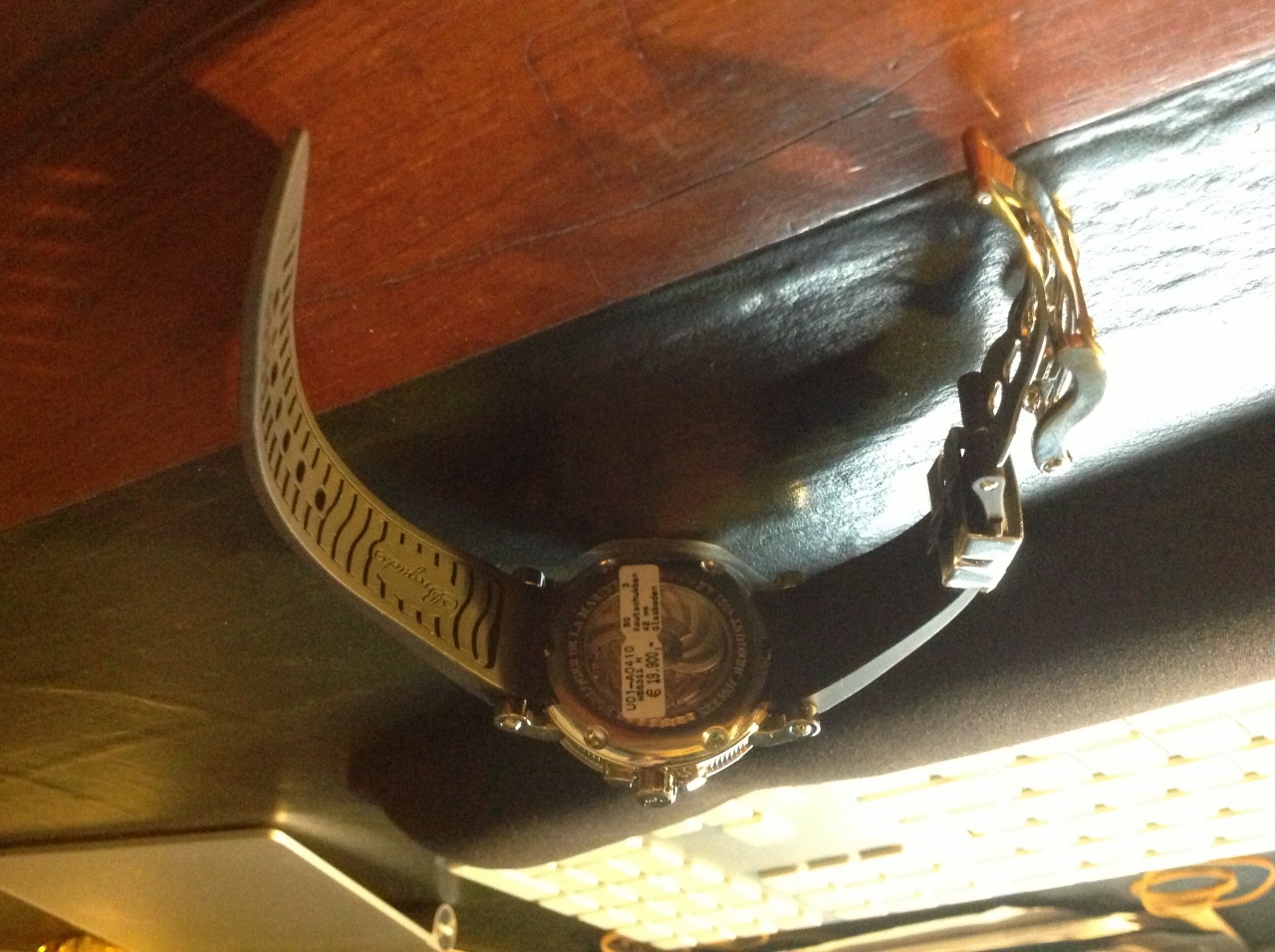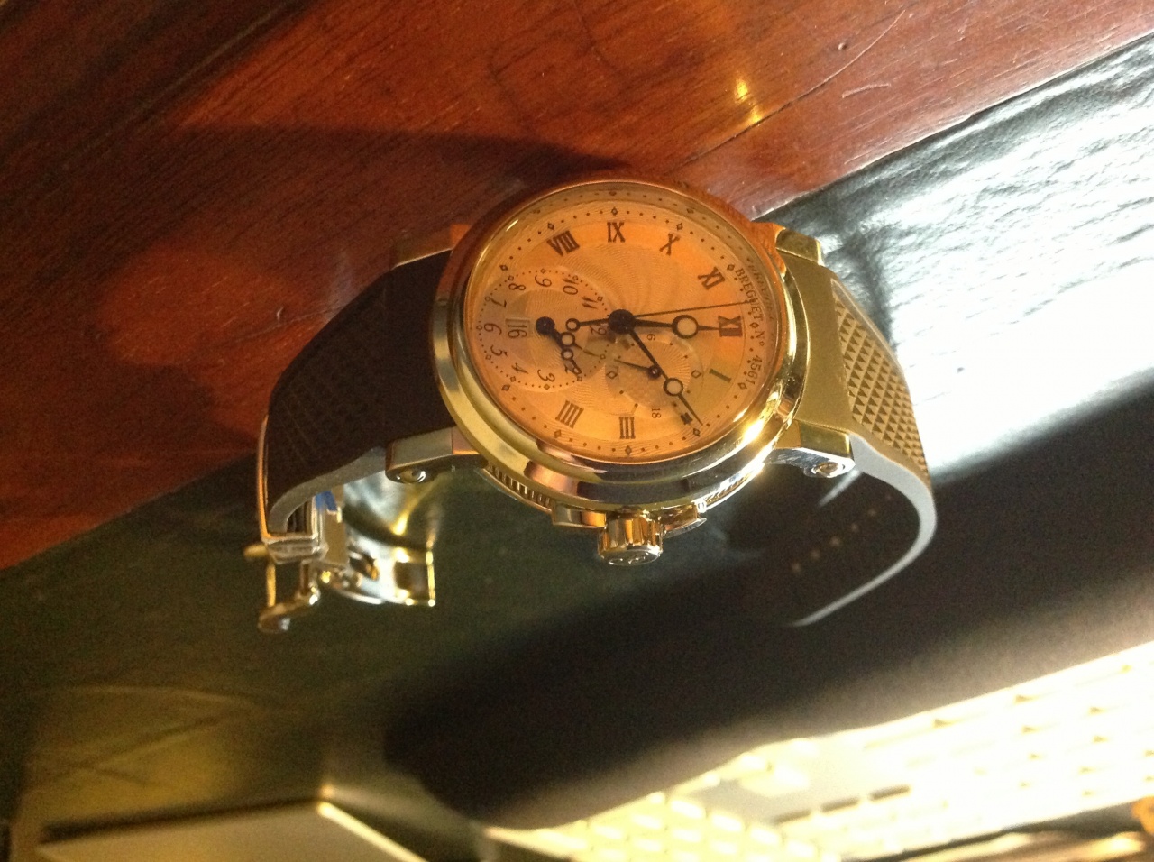 Механика-автомат.Калибр 517F. Диаметр 42 мм.,толщина 12.25 мм. Корпус из нержавеющей стали.Ремешок из каучука,черного цвета.Двойная раскладывающаяся застежка.Циферблат серебристо-серый, гильошированный.