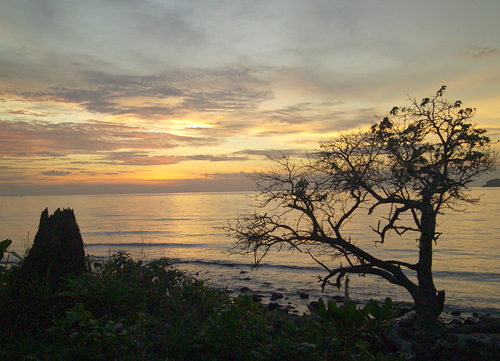 Остров на 80% состоит из диких джунглей. Отели расположены только на одном побережье острова. Приехав в наш отель Cliff Beach, нас заселили в домик с двумя комнатами. Отель состоит всего из 33 номеров, часть их находится на скале. Поднявшись на нее по крутым ступенькам на смотровую площадку, с которой открывается вид на близ лежащие острова. До которых можно доплыть на моторке или на каноэ. Весь отель утопает в зелени джунглей. Небольшой ресторанчик, бассейн. Первое, что сделали, это плюхнулись в "горячую" морскую воду – +30. Выпили два свежеприготовленных приветственных коктейля. Разложили чемоданы, вышли на свою веранду, посмотрели по сторонам и…вот оно! Райское место…Потрясающий закат, впечатляющий буйством красок и оттенков…ото всюду слышно пение птиц…бегают ящерки, гуляют павлины, стрекочут цикады…воздух влажный, чистый и наполнен ароматами джунглей, цветут цветы…и плещется теплое, ласковое море. Отель был заполнен на половину. Русских не было. Услужливый персонал, неплохо понимающий по-английски. Переполненные первыми впечатлениями, поужинали и легли спать.