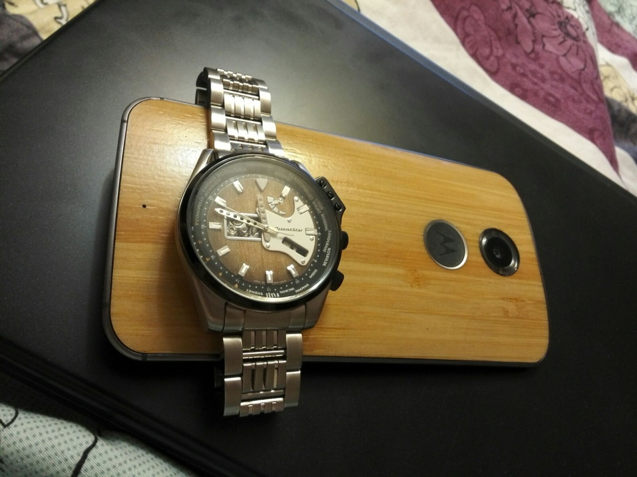 Отличие от упомянутых выше часов заключается в циферблате: он из дерева, что, в общем-то, и послужило основанием для выбора часов.