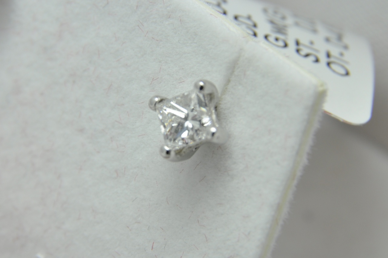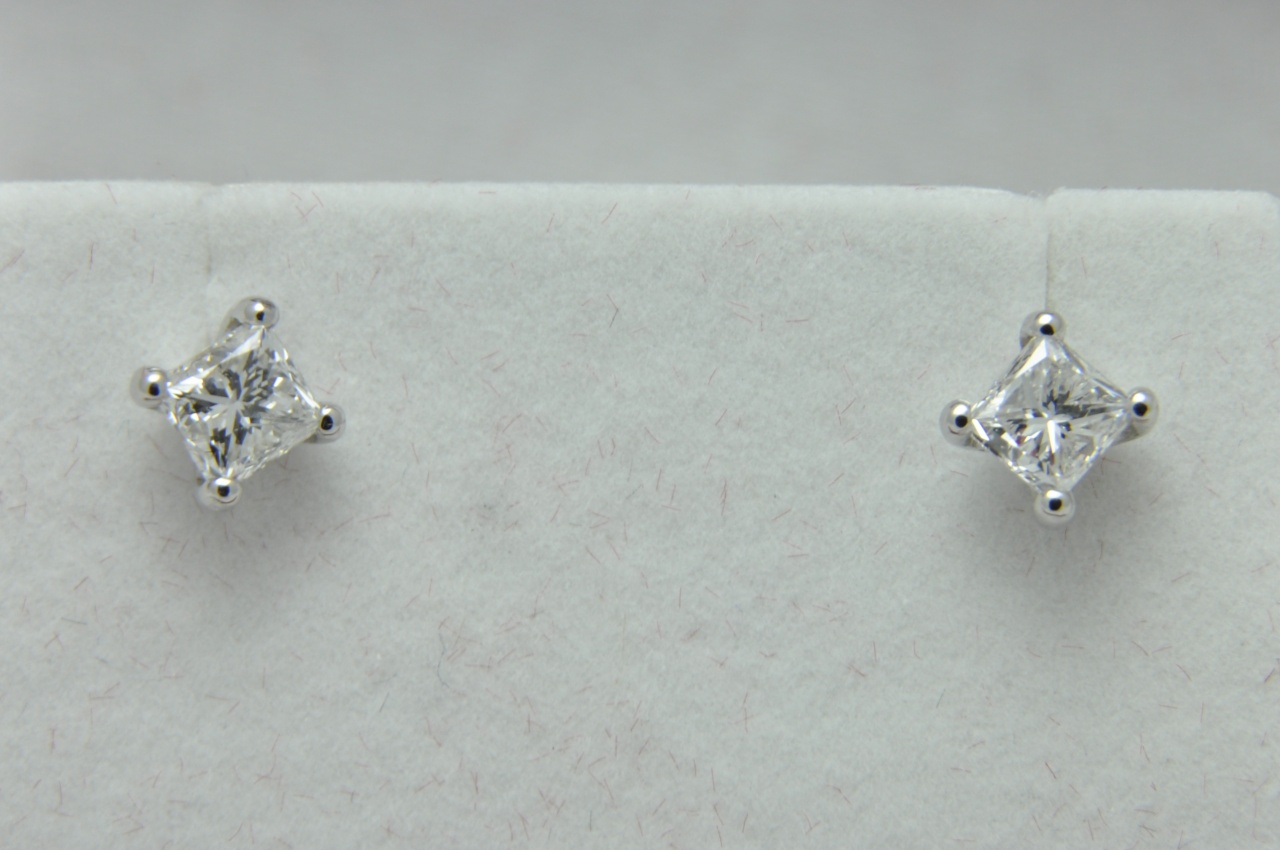 Бриллианты: огранка "принцесса", общий вес 0,71 карат, цвет 3-5, чистота 7а.