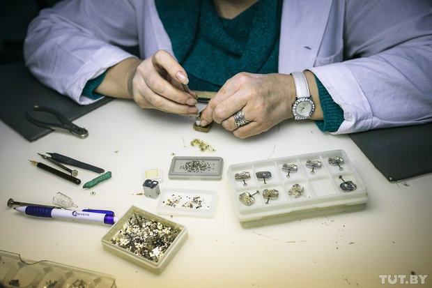 В цеху немноголюдно: идет сборка и репассаж (часы, больше года отлежавшие на сбыте, полностью разбирают, промывают и снова собирают).