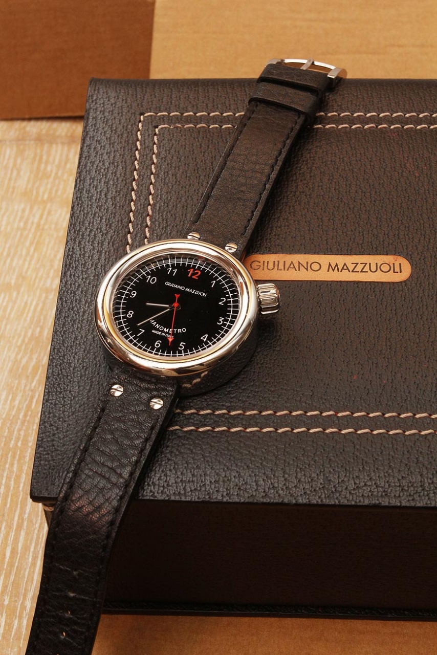 Предлагаю Вашему вниманию очень редкие, крупные (45 мм.) часы Giuliano Mazzuoli Manometro (на форуме продаются впервые). Часы абсолютно новые (любые проверки на состояние/подлинность). В данной модели явно прослеживается страсть создателя марки к спортивным автомобилям и гонкам прошлого, дизайн данной модели вдохновлен классическим автомобильным манометром.