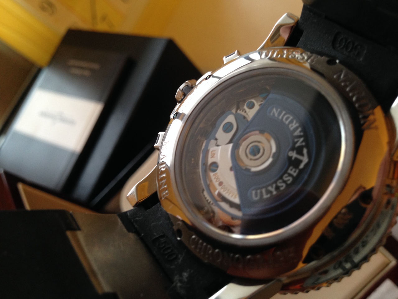 -Задняя крышка из титана на 6 винтах с окном из сапфирового стекла.