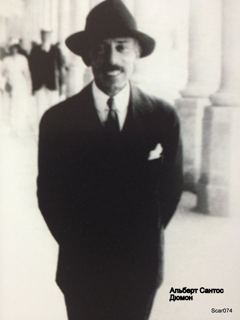 Примерно в то-же самое время парижский Луи Картье сдружился с пилотом-инноватором Альбертом Сантос-Дюмоном, человеком крутым и модным (как впрочем и все авиапилоты - самолет-этажерка, кожаный реглан, шлем и очки испанских летчиков - в общем все дела). Ну Альберт Сантос Дюмон (Alberto