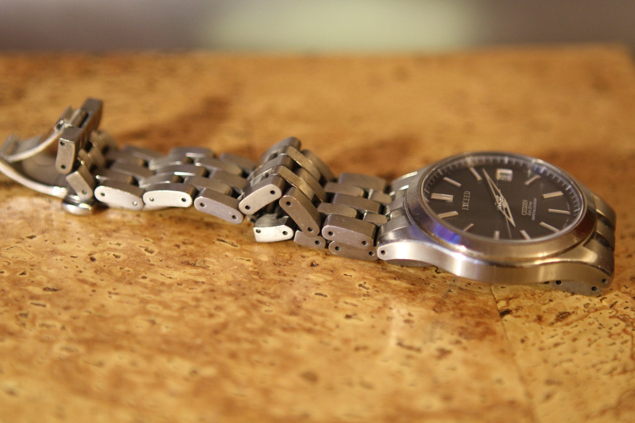 EXCEED EBJ74-1742 - JDM. Корпус и браслет часов титановый сплав - очень легкие. Браслет литой, все звенья в наличии. Корпус имеет царапины (см. изображения). Стекло - сапфир, имеет царапины видимые только в увеличительное стекло.