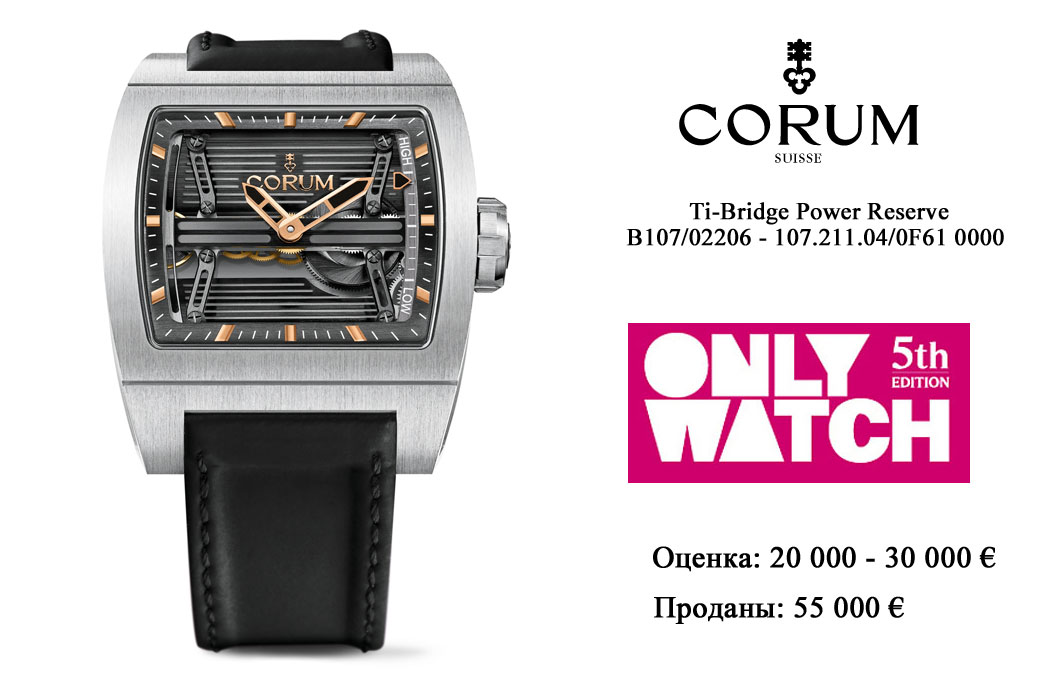 На втором месте расположилась модель Ti-Bridge Power Reserve от Corum. Их итоговая стоимость (55 000 евро) почти в два раза выше самых смелых ожиданий устроителей аукциона.