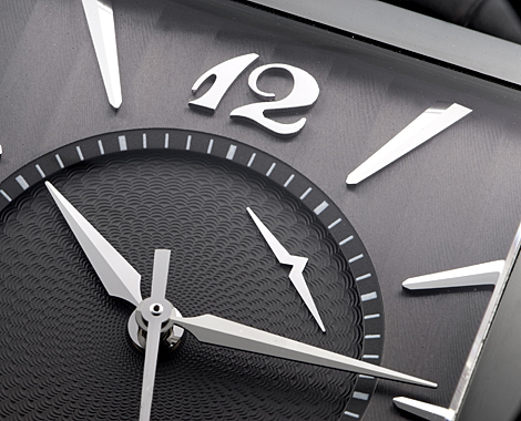 Dial : Silver or charcoal grey Guilloché, arabic numerals at 12 o’clock and applied indexes