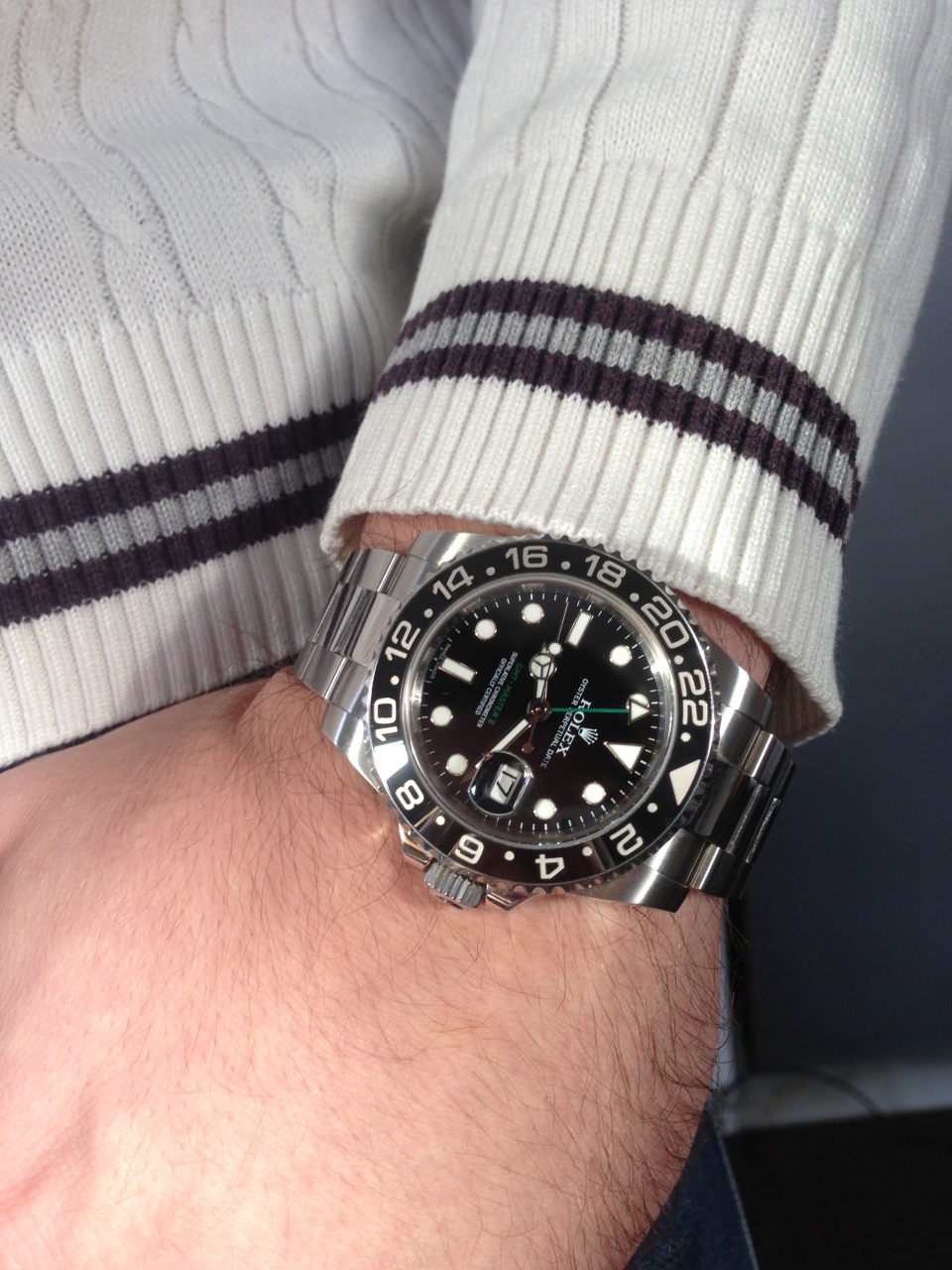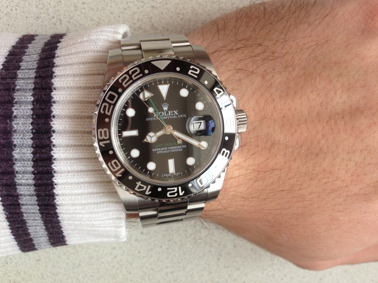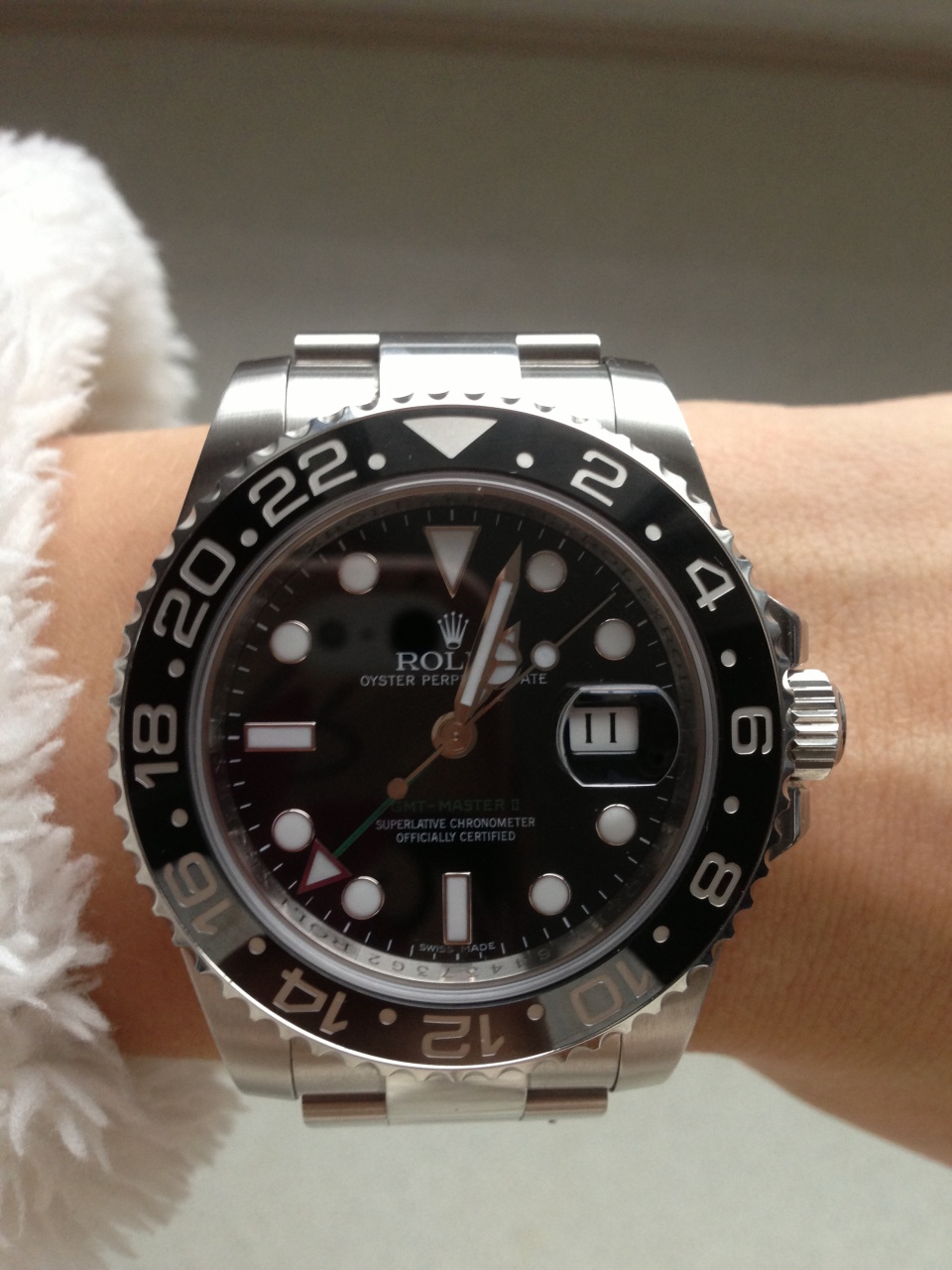 Механизм: Механика с автоподзаводом. Калибр Rolex 3186. Хронометр сертифицирован C.O.S.C. Корпус: Stainless steel 904 сатинированный; вращающийся в двух направлениях безел с черным кольцом Cerachrom, которое практически невозможно поцарапать; Ремень: Браслет сталь Stainless steel 904L Oysterlock, сатинированный; раскладывающаяся застежка. Удлиняющее звено Easylink.