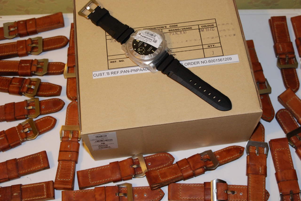 Ремень: Фирменный ремешок PANERAI из каучука (так называемый АККОРДЕОН); застежка из титана - в комплекте также второй ремень достаточно большого размера- со сложной застежкой(гравированной в фирменном стиде панерай с изображением человекоуправляемой торпеды)