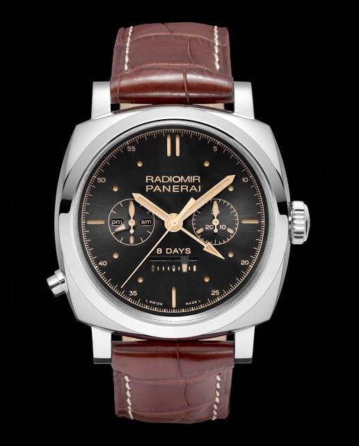 Дизайн циферблата новых моделей внешне похож на элегантный Panerai Radiomir 10 Days GMT PAM495, который был выпущен несколько лет назад. Но, в отличие от старого циферблата, новая модель обрела счетчик хронографа вместо апертуры даты.