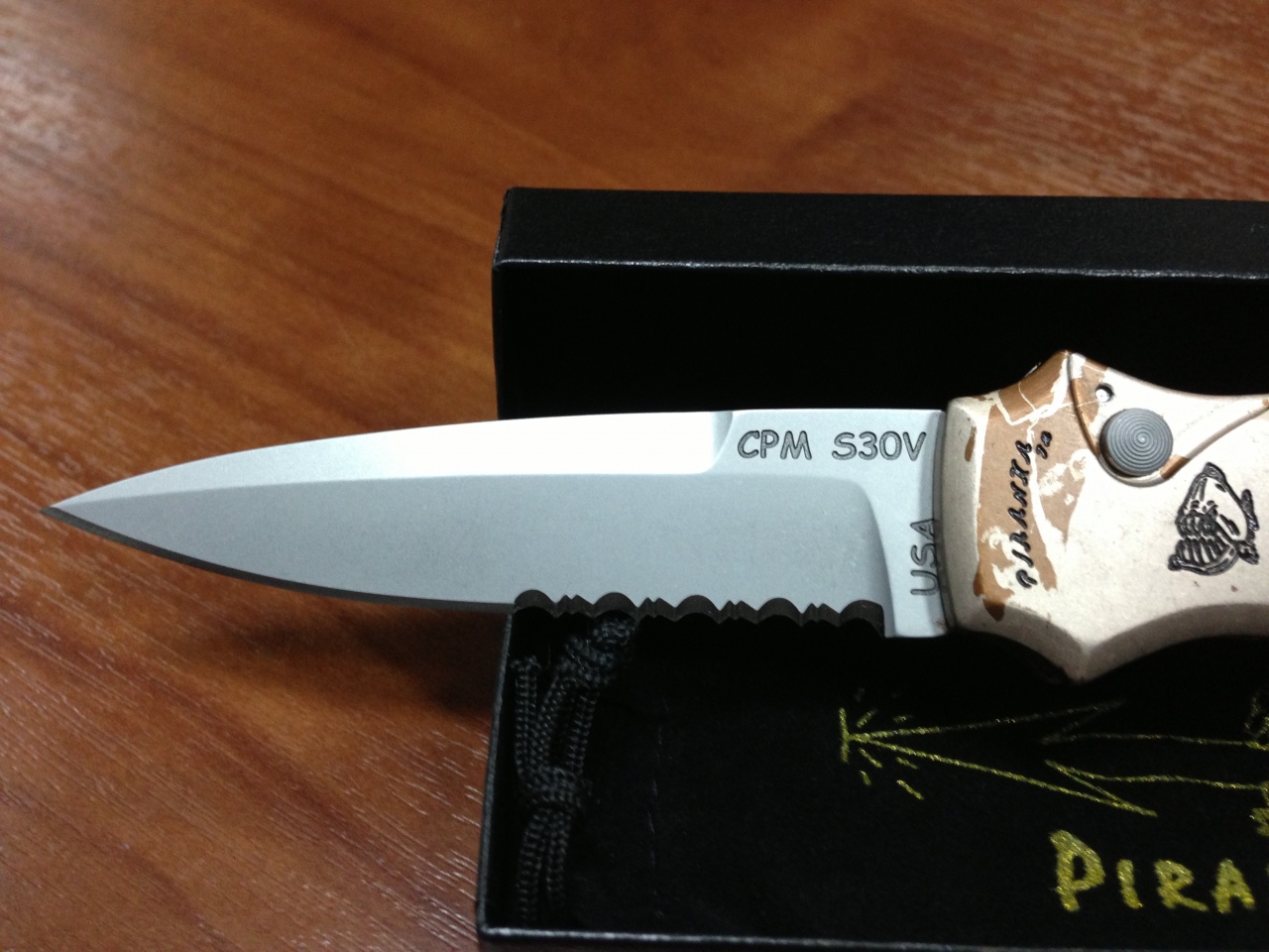 Неспешно продается абсолютно новый тактический автоматической нож одного из лучших в данном сегменте рынка американского производителя Piranha модель Bodyguard Automatic Knife Desert Camo с серрейтором из личной ножевой коллекции. Ножи данной фирмы на российском рынке не представлены, т.к. с РФ Пиранья не работает, да и в Штатах их непросто купить из-за спроса.